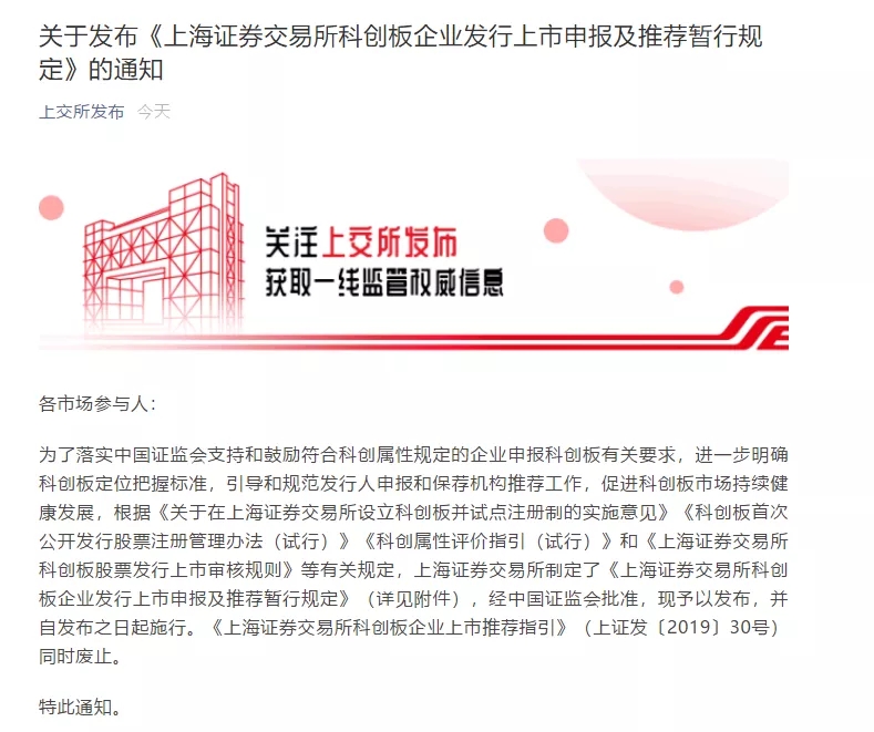 事實上,此前上交所曾制定《科創板股票發行上市審核規則》等多個業務規則,形成了覆蓋推薦、申報、受理、審核、發行承銷等較為完備的規則體系。在此次《暫行規定》發布后,原有的《上海證券交易所科創板企業上市推薦指引》予以廢止;上交所其他業務規則和審核問答中有關科創板定位的內容與《暫行規定》不一致的,應以《暫行規定》為準。